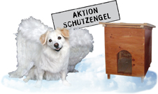 Hunde haben einen Unterstand oder eine Hütte. Die